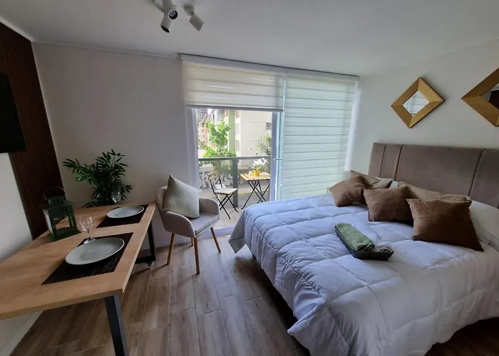 El apartamento Cómodo Departamento un ambiente está equipado con instalaciones de autoservicio como tetera, nevera y también horno, lo que ofrece a los huéspedes la oportunidad de preparar sus propias comidas. El apartamento Cómodo Departamento un ambiente también está a 10 minutos a pie de la parada de autobús Bellavista / Purisima y a unos cuantos pasos de la estación de metro Universidad Católica.
